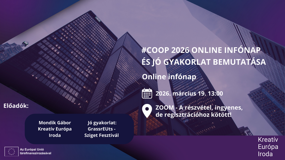 Az Európai Oktatási és Kulturális Végrehajtó Ügynöksége (EACEA) közzétette a Kreatív Európa - Kultúra ág Európai együttműködési projektek (European Cooperation Projects; COOP) területének 2026-os...