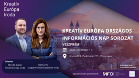 Országos turnénk harmadik állomásaként a 2025. november 11-én 15:00 órai kezdettel Veszprém városában információs napot tartanak munkatársaink a Magyar Fejlesztésösztönző Irodával (MFOI) közösen, a Veszprém megyei kulturális szektor képviselői számára a ForrásTÉR épületében (8200 Veszprém Óváros tér 25.).
