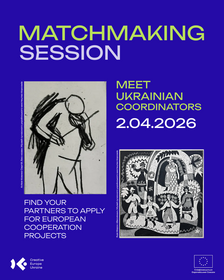 Ukrán társirodánk 2026. április 1-jén 14:00 órai kezdettel online matchmaking találkozót szervez Meet Ukrainian Coordinators for Cooperation Call 2026 (Ismerje meg az együttműködési pályázat ukrán koordinátorait 2026) címmel. A partnerkereső esemény célja, hogy összekapcsolja az európai szervezeteket azokkal az ukrán pályázókkal, akik az Európai Unió Kreatív Európa programja Európai együttműködési projektek (COOP) felhívása keretében készülnek projektek koordinálására. A résztvevőknek lehetőségük nyílik arra, hogy megismerjék öt—hét ukrán szervezet projektötleteit, és közvetlen beszélgetések során felderítsék az esetleges együttműködési lehetőségeket.