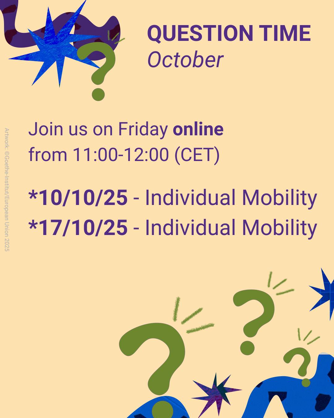 2025. október 10-én és 17-én 11:00 órai kezdettel online tájékoztatókat szervez a Culture Moves Europe az Egyéni mobilitás pályázatról. A Zoom platformon megrendezendő eseményeken az Egyéni mobilitás felhívással kapcsolatos kérdéseiket tehetik fel az érdeklődők. A részvétel előzetes regisztrációhoz kötött, amelyet erre a linkre kattintva lehet megtenni.