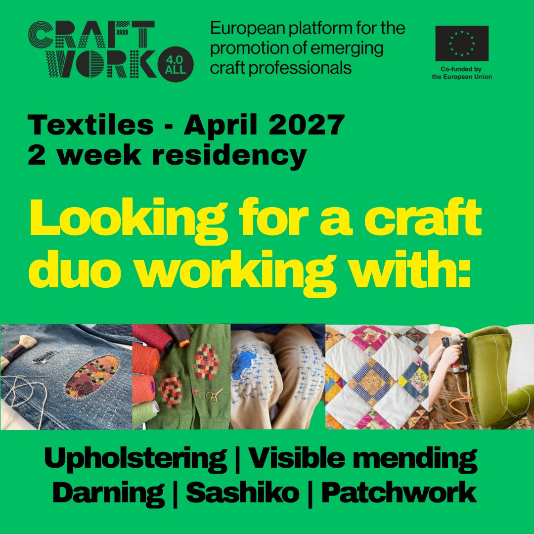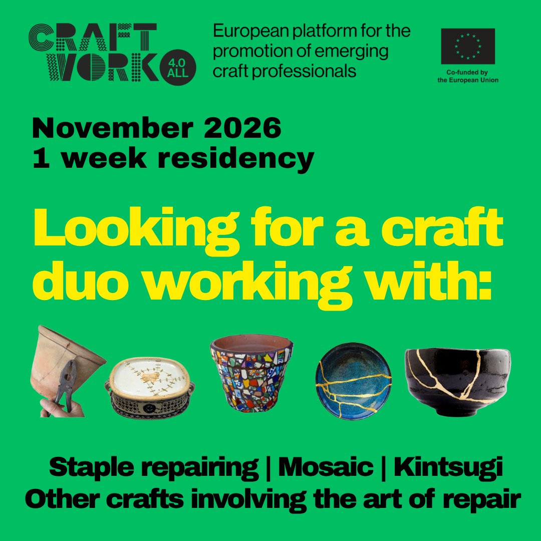A Craftwork 4.0 All pályázatot hirdet kézműveseknek alkotóházi ösztöndíjra Bulgáriába, Franciaországba, Görögországba, Horvátországba, Írországba, Olaszországba, Portugáliába, Szerbiába, Szlovákiába, Szlovéniába, Spanyolországba és Svédországba. A rezidenciaprogramra kézműves duók pályázhatnak.